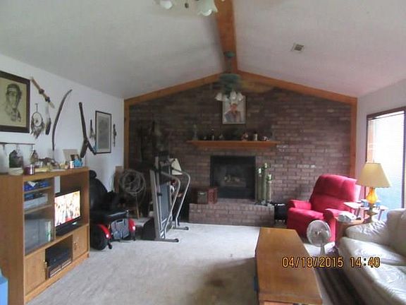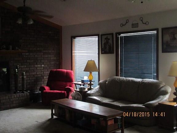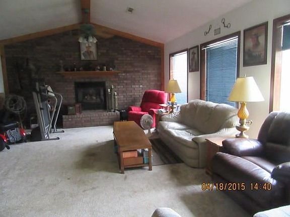 This home features 3 bedrooms and 2 baths with fireplaces in living room , dinning area , center island kitchen ,fireplace in master bedroom , whirlpool tub, detached garage with room on back side, Featuring open room with full bath .