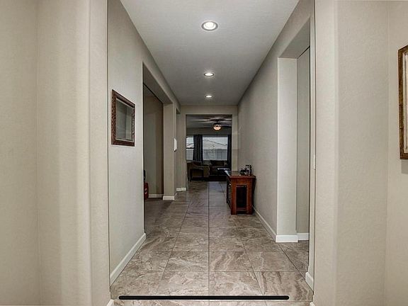 3 bedrooms plus den/office or formal dining room & 3 CAR TANDEM GARAGE. Flexible floorplan!Dare to compare! You cant build here & finish off the home like this for this price! Upgrades galore...pavered driveway, large North south lot with low maintenance rock landscape in back, coach lights at garage, stunning 18 inch tile floors thru out most of home, 4 inch baseboards, 8 foot paneled doors, alarm, suncreens, 2 inch faux wood blinds, upgraded fans in every room, Fully equipped kitchen w/ gas range, stainless steel appliances, refrigerator included, granite counters, huge island, upgraded staggered espresso cabinetry, pantry, master suite with separate oversized shower and tub, granite counters, custom mirrors, doubles sinks, and walk in closet. GORGEOUS CLEAN HOME!
