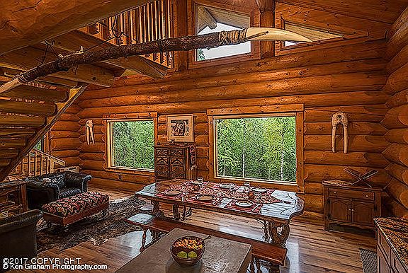 Riverfront retreat in private, gated, recreational area. Eagle's Nest at Kashwitna offers unparalleled access to world class fishing and hunting. This custom hand scribed log home is one of a kind in the Mat-Su Valley. The views are spectacular with over 3 acres covering 250 feet of Kashwitna River frontage. Master suite with private lanai overlooking Kashwitna River and secluded fishing hole.
