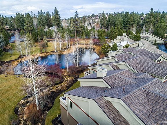 Welcome home to this luxurious & spacious town home in the gated golf community of Broken Top. Overlooking the lake and common area you will enjoy the open floor plan with master suite on the main level, vaulted ceilings, gas fireplace, beautiful wood floors, gourmet kitchen w/island, quartz counters & quality finishes throughout. Lower level features bonus room w/ wet bar, 2nd master suite, another bedroom & lots of storage areas. Decks on both levels to enjoy the views. Low maintenance living at its best.