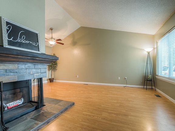 Check out this charming ranch style townhome. Home features 2 bedroom and 1 full bath. Family room with wood burning fire place and eat in kitchen complete with all appliances. Laundry room with washer and dryer. Back yard has a large wood deck. End unit with air conditioning. No HOA fees.
