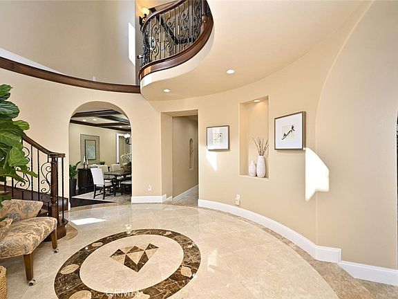 This beautiful home with 4 beds & 4.5 baths plus a huge loft upstairs offers luxury, comfort, and an open floor plan that boasts unique charm, natural lights highlighting high-end custom style and designs including a marble entryway, exposed beams, crown molding, an elegant iron spiral staircase, and gorgeous built-in designed curtains throughout the house. The downstairs features a large suite that includes a full bath and an additional powder room convenient for guests. Relax in the formal living room with cathedral ceilings and a romantic fireplace. Rejoice in the formal dining room with a built-in custom wood shelf. Make memories in the gourmet kitchen that is a chef's dream, that emphasizes case with a massive prep island granite countertop, walk-in pantry, six gas burner top cooks and all high-end stainless steel appliances with two built-in refrigerators, kitchen nook eating areas that opens to a huge family room with a fireplace. The steps from the family room and nook area lead to an entertaining backyard with a sparkling pool, spa, and a built-in BBQ, perfect for summer nights and holiday gatherings. Upstairs, the spacious primary suite offers a seating area featuring spectacular green views of the golf course from the balcony and a spa-style en-suite with a tub, separate shower, two walk-in closet, and large dual vanities. Another perk is a perfect family space with an extra large bonus room upstairs featuring a bar and wine section, and wine cooler. High-quality wood, travertine, and marble floor throughout the house. This upscale neighborhood is within walking distance of award-winning Seacliff Elementary, near parks, Huntington Beach pier, Surf City's famed "Main Street, and Pacific City shopping center. This unique home on the golf course is the one you have been waiting for.