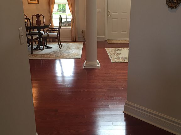A custom featured split level, 4 bedroom, 2-1/2 bath home in Fieldstone Estates. This home has 3,200 SF on a large lot (111' wide) with a brick-trimmed porch, beautiful landscaping, irrigation system, recessed lighting and a stamped concrete walkway and patio. The spacious floor plan includes many special features which include 11' ceilings, cherry wood flooring, custom 6-1/2" wide woodwork, all-wood doors on the main floor and recessed lighting throughout. The entrance has a soaring ceiling with chandelier and white pillars alongside the formal dining room with a matching chandelier. The den has California berber carpeting with glass french doors and transom above. The two-story great room has berber carpeting with cherry wood border, corner granite gas fireplace and hearth with custom mantel. The kitchen has 42" cupboards, granite counters, large snack bar, mirrored-back serving counter, walk-in pantry and nook with octagon bay windows. The master bedroom has berber carpeting with a jacuzzi bathtub, separate shower and large walk-in closet. The second floor has a balcony overlooking the great room, foyer and den. The 3 bedrooms have berber carpeting and walk-in closets. There is a full unfinished basement, new sump pump in 2015 and new hot water heater in 2016. There is also an extra-large tandem garage with lots of storage space.