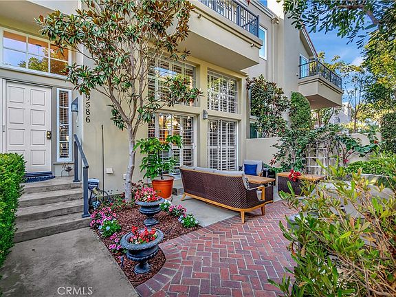 This exquisite townhome is nestled in a serene, interior location within the prestigious guard-gated community of SeaCliff on the Greens, just steps away from the sandy shores of Huntington Beach. Spanning over 2,100 square feet of living space, comprising of 3 bedrooms and 2.5 bathrooms. Upon entering through the front patio, you are welcomed into a bright living room adorned with vaulted ceilings, a cozy fireplace, and floor-to-ceiling windows equipped with custom shutters. The dining room seamlessly connects to the kitchen, which includes quartz counters, a breakfast bar, a sunny breakfast nook and a built-in desk. The spacious primary bedroom boasts high ceilings, a private balcony, and an en-suite bathroom featuring dual sinks, a soaking tub, and a walk-in shower. The two additional bedrooms are located upstairs, one of which features sliding barn doors with custom built in bookshelves and a Murphy bed. Fabulous private patio with professional landscaping and beautiful brick hardscape with direct access off the great room with dual sliders - great for entertaining! This fabulous property is situated in a highly desirable location, just steps to the community pool & spa, multiple parks, wetlands, the ocean, dog beach as well as award-winning schools and more!
