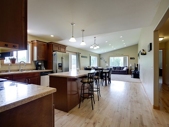 Spacious rambler with an open concept floor plan. 3 bd, 2 baths on the main with 2 additional bedrooms in the walkout bsmt. The kitchen features cherry cabinetry, center island & stainless appliances and is open to the DR and LR. The master suite offers his and hers closets, solid surface counter and under-mount double sinks and a tile shower. The family room has been recently updated. This huge area walks out to the side yard and has plenty of rooms for the big TV, a game table and a wet bar. This home has so much more that you just have to see, don't miss all the little extras like the hardwood floors and the laundry shoot! 3 stall heated garage and an extra lot that is included makes this home a must see. One mile from Buena Vista.