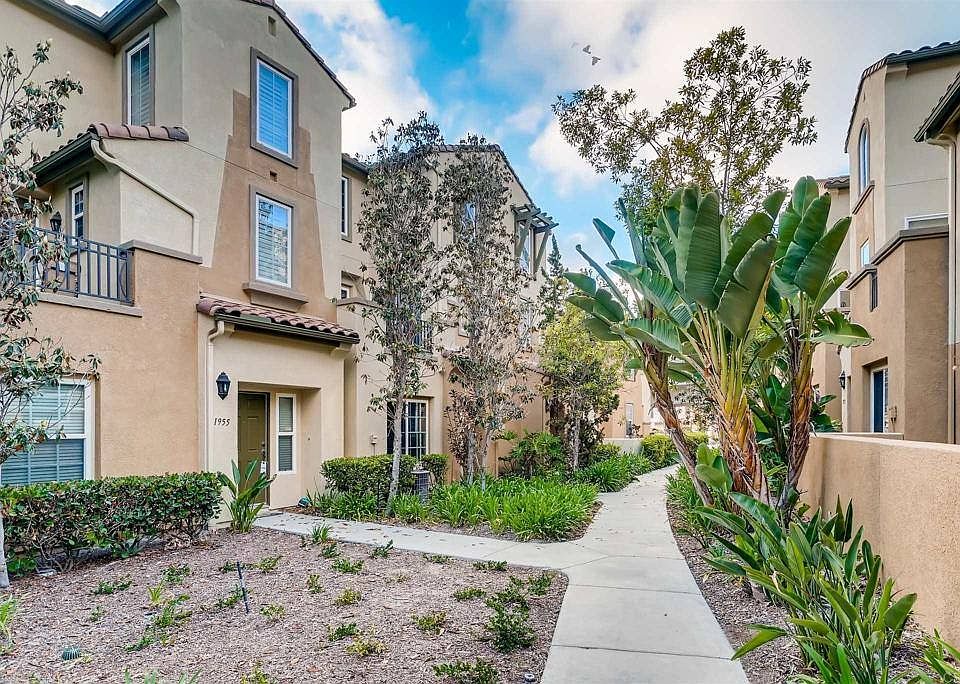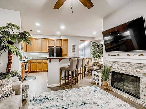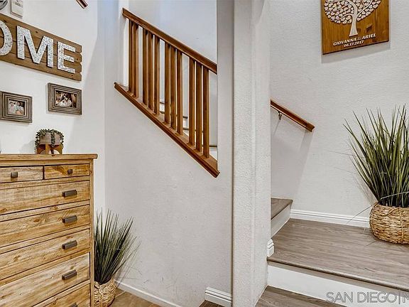 This stunning tri-level townhome is situated in the highly desirable Treviana community of Otay Ranch. The home features a versatile "BONUS" room on the first level, ideal for use as an office or a third bedroom. The two bedrooms, each with its own bathroom, are located on the third level. The home boasts new vinyl plank flooring throughout and a cozy stone fireplace in the living room. The kitchen includes an island and energy-efficient appliances, which are included with the home. Enjoy a private balcony on the second level. The property also has an attached two-car garage with additional storage and a water filtration system. The community offers excellent amenities, including a pool, gym, play area for children, and a BBQ area.