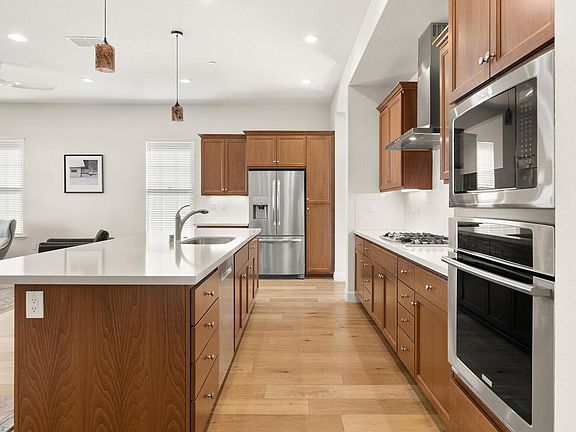 Sophisticated, livable design - this beautiful home is warm and inviting with gorgeous engineered hardwood flooring, 10 ft ceilings and great natural light. Two ensuite bedrooms on ground floor, and office, make this a perfect multi-family home. Beautiful kitchen has expansive cabinet/countertop space with soft close doors and drawers and a large walk-in pantry, and Cesarstone countertops. Second floor features two spacious bedrooms, full bathroom and a large open loft. Great location in the prestigious Sage Development of The Cannery is just steps from the ever-popular Ranch House and pool. Owned-solar, tankless water heater, high performance attic insulation, LED lighting throughout, Milgaard windows, EV pre-wire, and much more. Enjoy the outdoor California room nearly year-round in addition to the low-maintenance yard featuring enough space to garden/play and still allow for relaxation. Under a mile from top-rated schools & surrounded on three sides by the popular Cannery Loop Trail