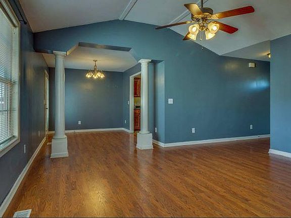 Ready to move in! Quick close available. Open floor plan. Great room w/vaulted ceiling & ceiling fan; dining room; kitchen w/custom cabinets; master bedroom features garden tub & separate shower; fans in all bedrooms; wood deck; fenced back yard with shed large enough for riding mower.