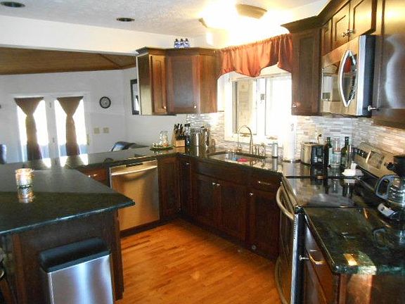 Overlooking the Ky River you will have a one of a kind home/ vacation home/ retreat. The kitchen has been completely remodeled less than a year ago. Gorgeous granite counter top and stainless like appliances. Fireplace with gas logs in the great room and access to the deck overlooking the river with spectacular views. Spacious master suite with jetted tub. There is a full basemen finished with a bedroom and full bath, another room with a closet. A garage in the basement with a wood burning stove that is 2 years old. The heat pump has a new exterior unit, 3 years old, the new interior unit is 1 year old. With river frontage this is a nature lovers dream , fishing, water sports, and campfires. Boat ramp nearby. Bluegrass airport and Lexington 30 minutes away.