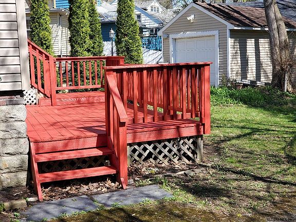 New black top to driveway and pathway to front door. Rehab property with back deck finished and painted, large back yard and detached remote garage door added. New Steam furnace , upgraded electric 200 amp, New water heater. Living room fireplace. Freshly painted with multiple recessed lighting added to living room and kitchen. Wood floors sanded and finished. Eat in Kitchen gutted down to the studs with granite countertops, stainless steel appliances including gas stove, ceramic floor tile and backsplash, brand new fixtures, large double sink, recessed lighting. Large bedrooms with fans in each room master with walk in closet. Room downstairs can be used as office or den/family room. Large walk up attic for extra space. Laundry and Cable ready.