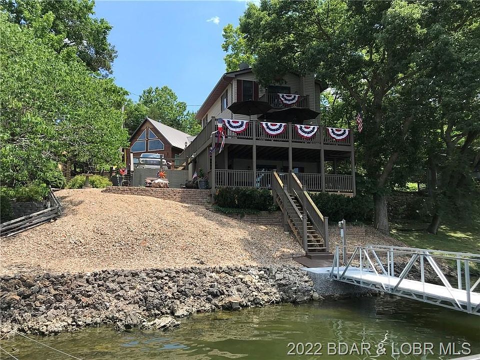 What a perfect lake property! So well maintained, move in and start enjoying as this home comes fiurnished and with a new Rough Water dock installed! The view is a mix of cove and long main channel, best of both worlds. Deep water, and pavement most of the way to the home. Plenty of parking, room for a garage, no grass to maintain either. Seller has in hand a new septic inspection showing everything is in great shape. Recent upgrades include newer room, mostly Pella windows and doors, 2 yrs on the kitchen and 2 baths remodel, interior paint. You'll notice deck and dock gates to keep kids and pets safe. Newer heat pump furnace with propane wall heater backup for efficiency. Enjoy the real wood fireplace too! 3 Different decks and a bonus sun patio which is perfect for a hot tub! Close to Larry Gale gov't boat ramp for easy watercraft launching. Really a nice home and property and dock! Couldn't be any better for entertaining or just relaxing after a day on the water.