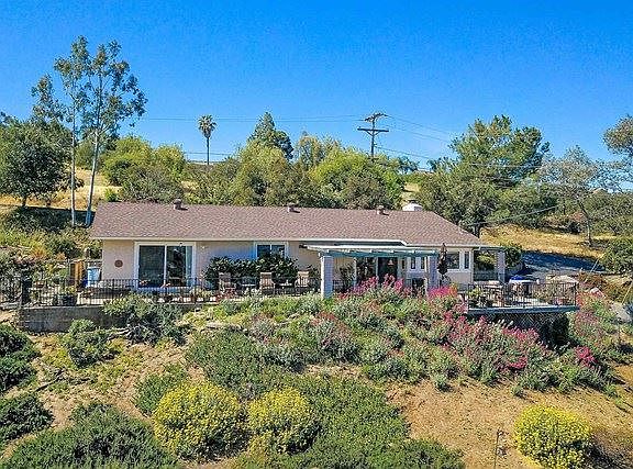 VIEWS VIEWS VIEWS - Beautiful maintained and updated home on 1.51 acres, zoned A-70 with room for horses. This single story home has 3 bedrooms and 2 full baths, a mini bar and ample storage including walk in closets in 2 of the bedrooms. There is an attached 2 car garage with additional paved guest parking on the street side of this corner lot. The kitchen has granite counters and SS appliances with a full window wall view of this picturesque property. There is a combo family room / dining room with a cozy brick fireplace. The living room offers a large sliding glass door with access to the oversized fenced back patio with forever views. All bedrooms are on the main level of this single story home. This home is ALL electric with a conventional septic system with a 1,000 gal tank and water is with the Padre Dam water district. The bottom of the property has double entry gates for RV parking, Horse Trailers or additional guest parking. There is water hose bib at the bottom of the property and also through out the property for landscaping. There are assorted fruit trees and beautiful landscaping adorning the property. The front of the home has areas to watch more of the natural habitat that surrounds this area. Easy access to the schools, town or the freeway. There are many more additional features to this wonderful home but in just one visit you will fall in love with the home, the land and the views. If you love space and you love nature with forever views then this is the property for you. The back patio is where the world takes your breath away and brings tranquility with unobstructed views.