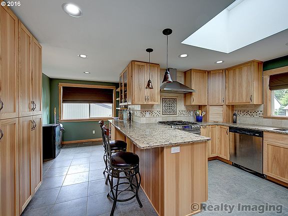 Beautiful hickory kitchen cabinets and trim throughout house, meticulously built and installed by homeowner. Wine racks, Murphy bed, stainless appliances included if desired. Vaulted ceiling, great layout, peaceful setting with creek view (Arleda Park), large deck off living room and master, fenced backyard. Within minutes to Nike, Intel, shopping, amenities.