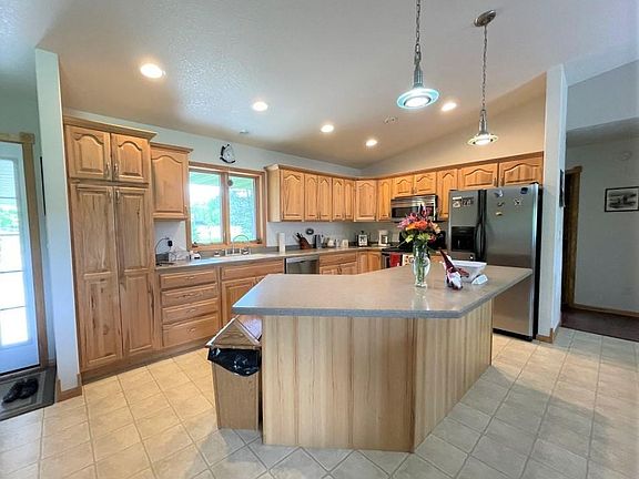 Park Rapids Country Home - Very comfortable and spacious one-level three bedroom home that consists of large primary BR with full bath and walk-in closet plus additional full bath and 1/2 bath. Vaulted ceiling in living area with gas fireplace and sunroom 14 x 20 sunroom off dining area. In-floor heat in home and attached garage plus mini-split in living room. Lot has .66 acre plus there is a ingress/egress walking easement access to Fish Hook Lake. In addition to the attached double garage there is a 40 x 40 Foltz building that has cement floor, electricity and insulation.
