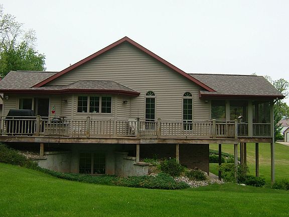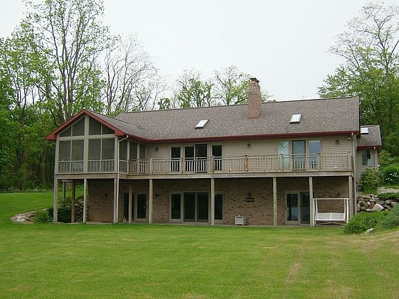 Luxury at the lakeshore! Come home to this amazing estate with 80' frontage on beautiful All Sports Fishers Lake. So much to enjoy and explore and offers a world of privacy, beauty and nature all in one. A custom walkout ranch home loaded with extras and filled with light and abundant windows for four seasons of enjoyment. Features include a large great room and dining combination, complete with fireplace, oak flooring, custom built-ins and open staircase to lower level, a gourmet kitchen complete with solid hickory cabinetry, full appliance package, built in desk, island with breakfast bar and cozy breakfast nook, then on to a master suite overlooking the lakefront and a private full bath with whirlpool, dual sink vanity and separate shower. A second bedroom/office on main level with