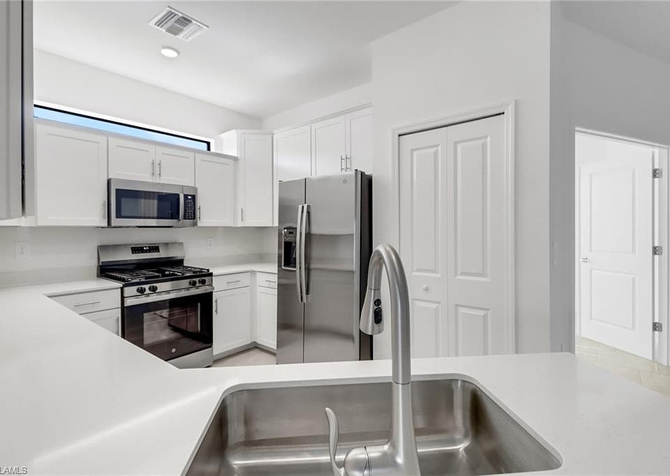 Be the first to live in this brand new, never-before-occupied villa in the highly sought-after Verdana Village of Estero. This beautifully designed home features an extended lanai, perfect for outdoor living and entertaining. The chef-inspired kitchen is equipped with natural gas, instant hot water, and a premium stainless steel appliance package, making it a standout space for cooking and gathering. With 2 bedrooms plus a den, the layout is both spacious and versatile, ideal for work, guests, or hobbies. Additional highlights include an attached two-car garage and immediate availability for move-in. As a resident of Verdana Village, you'll enjoy an unmatched lifestyle with access to resort-style amenities: a luxurious pool and spa, on-site restaurant and poolside bar, state-of-the-art fitness center, indoor and outdoor pickleball and tennis courts, bocce ball, playground, dog park, and much more. Live the luxury lifestyle in this exceptional gated community a place you'll love to call home.