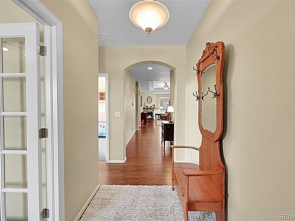 Elegant ranch style home with main floor laundry and finished basement. This home features 4 bedrooms plus a main floor office, 4 baths, 3 car garage and situated on a corner lot across from the community park & pool. The gleaming wood floors draw you into this natural light filled home. The beautifully appointed gourmet kitchen boasts stainless steel appliances, granite counters, plenty of cabinets & pantry. Off the kitchen is the main floor laundry with mudroom and access to the 3 car garage. The primary suite features a 5-piece bathroom and walk-in closet with custom built-ins. The finished basement offers 2 bedrooms, 3/4-bath, kitchenette with wet bar, dishwasher and wine fridge, recreation room, and family room. Relax and enjoy in your backyard retreat with cozy outdoor gas log fireplace, covered patio + large patio w/ pergola, water feature and hot tub! The yard is professionally designed & landscape and allows for gardening. Other bonus features include custom built-ins including 2 murphy beds, whole house Culligan water filtration and water softener system, basement storage, radon mitigation, extra storage closets, epoxy garage floor, ceiling mounted garage storage, and garage exit door to backyard. The list continues with fresh exterior paint, June 2024, new window screens and casings as well as a new class 4 storm roof. This Dream home is Move in Ready!