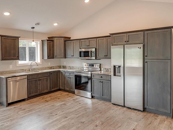 Come check out this quality built new construction home on a beautifully treed lot with excellent curb appeal. Nice open floor plan features 2 bedrooms on the main level and 1 in the upper level. Features vaulted main level living area, granite counters and custom cabinetry, heated garage and main level master. Plenty of natural light with a wall of over sized windows overlooking the private backyard. Driveway is in and ready for fast occupancy! Don't miss this one!