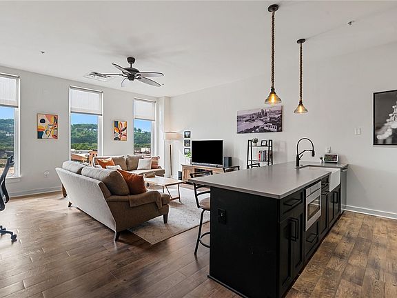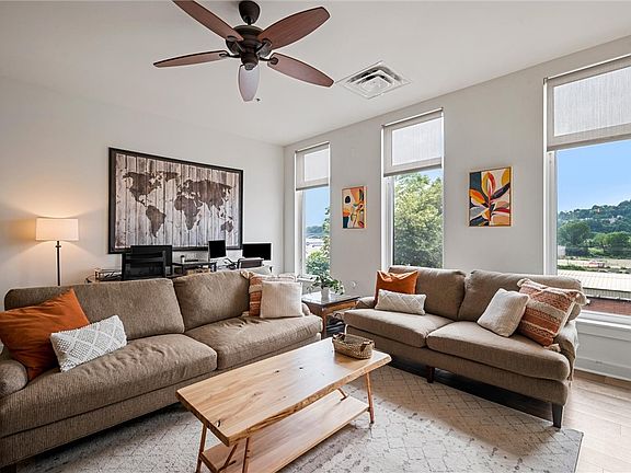 Welcome to Blackbird Lofts Unit 3G—an upgraded 1-bed, 1-bath condo in Lawrenceville, Pittsburgh’s most dynamic neighborhood, where art, innovation, and culinary culture meet on every corner. This unit stands out with high-end finishes and thoughtful upgrades. The open layout features 10-foot ceilings, hardwood-style vinyl floors, and large windows that capture the afternoon sun and even a peek of the fireworks at PNC Park. The sleek kitchen is a chef’s dream with matte finish quartz counters, premium stainless appliances and extra-height black cabinets. The bedroom features a custom wood accent wall, while two built-out California closets nearby offer generous, organized storage. A tiled walk-in shower, in-unit laundry, assigned garage parking & bike storage offer everyday ease. This LEED-certified, pet-friendly building is energy-efficient and secure, with an HOA covering water, sewage, cooking gas, trash, and building maintenance. Love the space, live the neighborhood— take a look.