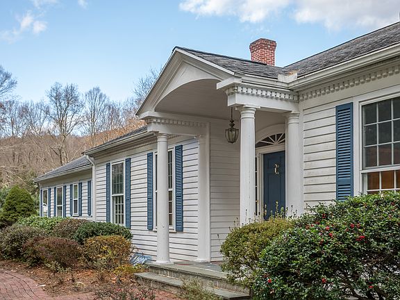 Classic home with single level living! Beautiful private, quiet location in sought-after Roxbury location, just minutes from Roxbury Center, Tierney Preserve for great hiking and southern commute to NYC. Gorgeous 6.4 acres of open level land, light woods, mature gardens, stone walls and Pool. 3 Bedrooms en suite and guest 1/2 bath with High ceilings throughout. A stonewall lines the front of the property and opens to the driveway and to the level land. There is a formal living room with fireplace, high ceilings, bookshelves and hardwood floors. The dining room has a grand window which overlooks the beautiful grounds and double entries into the kitchen and also the sun room space. The kitchen with breakfast bar, wood cabinetry, pantry opens on to a sun room, which opens on to the pool and grounds. The master bedroom with full bath and soaking tub. There are two additional bedrooms, each with their own baths. Additional Amenities: Sun room, Arched Doorways, Potting Shed, Over sized 2 bay garage, Large open basement space for storage.