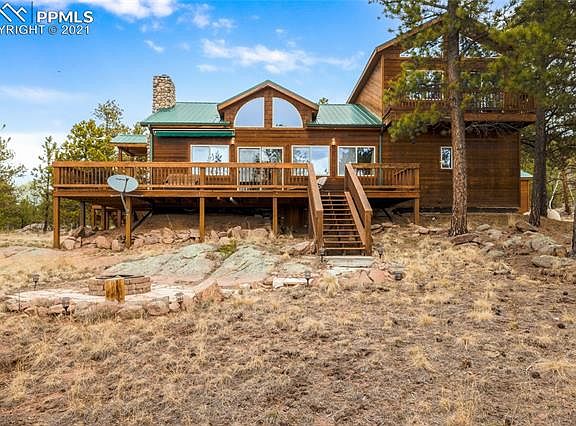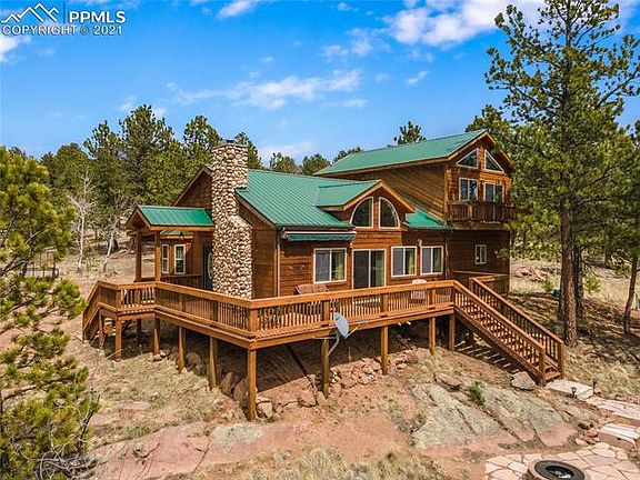 Tucked away in the tress, this picture-perfect cabin is the tranquil retreat of your dreams. A seasonal creek greets you as you wind up the gravel driveway to this beautiful cabin wrapped in stained wood siding and a metal roof. A large wood deck on the front and west side of the home offers abundant space for outdoor cooking, entertaining, and leisure. Pinewood hardwood floors and vaulted pine ceilings are what truly create the authentic Colorado mountain vibe a cabin of this standard exudes. The open main level floorplan is perfect for cozying up by the wood-burning fire stove, reading a book by the bay window, or enjoying a game night with others in the dining area. Prepare delicious meals in the large, open kitchen with plenty of cabinets for storage as well as a large walk-in pantry behind a gorgeous, etched glass door. When it's time to turn in for the night choose from either the main level bedroom with adjacent full bathroom or the second level owners retreat with a walk-in closet, private balcony with mountain views, and an en-suite bathroom with custom wood vanity. The detached two-car garage offers great storage for your vehicles and ATVs or can be utilized as a workshop if you'd prefer to park your vehicle under the covered, concrete carport. Just off of the carport is a concrete pad with a hot tub hook-up. Enjoy your days strolling the 4.8-acre property and end them with a relaxing evening around the wood fire pit just off of the deck. Though this cabin is tucked away, it is only a 30 minute drive to Cripple Creek and a 40 minute drive to Woodland Park allowing you to still enjoy your dining, shopping and entertainment. 2021-05-21