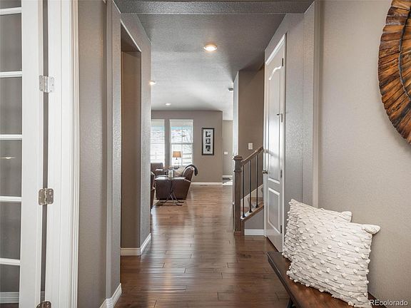 Refined finishes throughout this 5 bed / 5 bath home backing to Open Space. The current owners took pride in updating the finishes and adding a professionally finished basement. Upon entry, is the private office with French doors and next to the ½ bathroom. A large and beautiful family room with a gas fireplace is inviting with natural light and wood flooring. The open floorplan brings you to the desired kitchen with ss appliances, slab granite, pantry, island, and large eat-in area that fits almost any size table. The main floor includes a functional side office and mudroom. Upstairs you will find the primary suite with coffered ceilings and luxury en-suite bathroom with dual slab granite vanity, soaking tub, tiled shower with a bench and walk-in closet. Three (3) additional bedrooms are upstairs and all have private bath access. Recently finished is the brand-new exquisite basement. Featuring a full-size bar with ice-maker, beverage fridge, quartz, storage, shelving, sink, and bar seating. A perfect place for media watching and entertaining. There is an additional bedroom on this level with a bathroom across the hall. This area is finished with an exercise room. Backing to Open Space is the large covered deck. The large 3 car tandem garage allows for additional storage. Easy access to I-25. Douglas County schools, restaurants and shops are minutes away. Move in ready! You will love calling Castle Pines home, it's a truly special place!