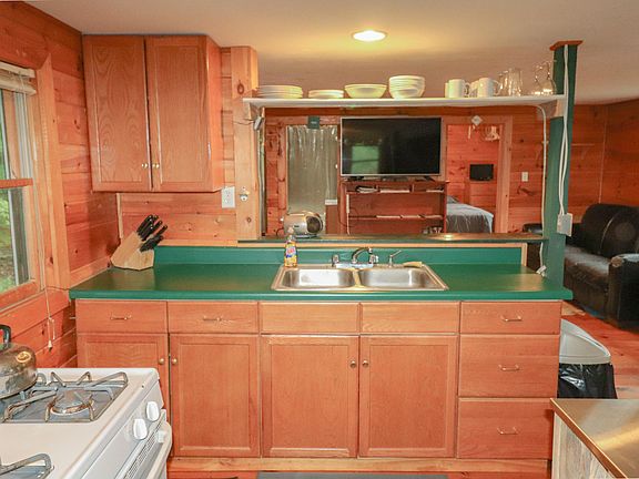 Are you looking to live off the grid? This is the perfect camp for you with a very private 4.7 acre lot. The camp has a open concept with a full kitchen, Dining room, Living room. The first floor also has one bed room and a full bathroom. Upstairs you will find room to sleep 6 additional guest. Heat comes from the wood stove in the living room. Power is from the solar panels and it's also wired for a generator. snowmobile and ATV trails are located close by.