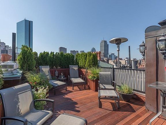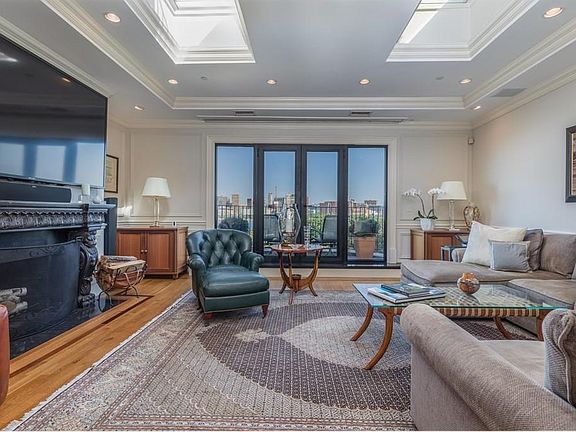 Grand waterside Beacon penthouse with direct elevator access, garage parking and a stunning private roof deck. Located in a 3 unit owner-occupied building, this duplex boasts high ceilings, two wood-burning fireplaces, built-in surround sound, programmable Lutron lighting, insulated sound treated windows, and power shades throughout. Enter the home directly from the garage at either the living or bedroom levels via keyed elevator access. The desirable open kitchen/living floor plan extends to a double french door walk-out terrace with beautiful Charles River views. Adjacent to the kitchen and dining area is a luxurious home office, featuring a built-in wet bar, humidor and oversized skylight flooding the room with natural light. The master suite features a wood burning fireplace and 2 spacious closets, in addition to a large walk-through dressing area. Master bath offers a double vanity, deep soaking tub and steam shower with 8 shower heads. Includes 1 garage space and 1 outdoor space.