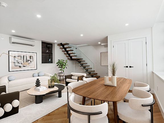 196 Bergen Street is a collection of three brand new, fully renovated rental units located at the crossroads of where Boerum Hill and Cobble Hill meet. Residence one is a fully renovated two-bedroom, two-and a half bathroom triplex and features high ceilings, maple chevron wood flooring, abundant storage throughout, and individually controlled, Ductless, energy-efficient mini-split air-conditioning and heating units in each room. The large open kitchen features a breakfast bar and is equipped with brand new, top-of-the-line appliances including a dishwasher and refrigerator/freezer by Blomberg, as well as a built-in oven and microwave by Bosch. Additional kitchen features include matte charcoal gray cabinetry, white marble countertops with backsplash, and in unit washer/dryer by Blomberg for added convenience. Off the kitchen is the large living and dining space that is perfect for entertaining and also features a powder room with high end fixtures. Up the staircase will lead you to the primary bedroom that offers a generous layout and three large closets with built-in overhead storage to provide ample closet space. Enjoy the luxurious en-suite bathroom complete with a large floating vanity with storage, dual sinks, heated floors, matte black fixtures, and a large standing shower. Down the hall is the secondary bedroom that can easily be used as a home office or nursery and features an additional en-suite bathroom with more high-end fixtures. Best of all, enjoy the large skylight above that opens into your own private rooftop that overlooks the lush gardens and the beautiful tree-lined streets that Brooklyn has to offer. 196 Bergen Street offers boutique luxury living and is perfectly situated on the corner of Bergen and Bond Streets. The building's convenient location leaves you seconds away from your local amenities, cafes, shops, and supermarkets, as well as some of Brooklyn's most notable restaurants such as Savelli, Rucola, Cafe Kitsune, Gage and Tollner and Grand Army. The building is pet friendly and offers easy access to the F/G subway lines and has a city-bike doc right outside.