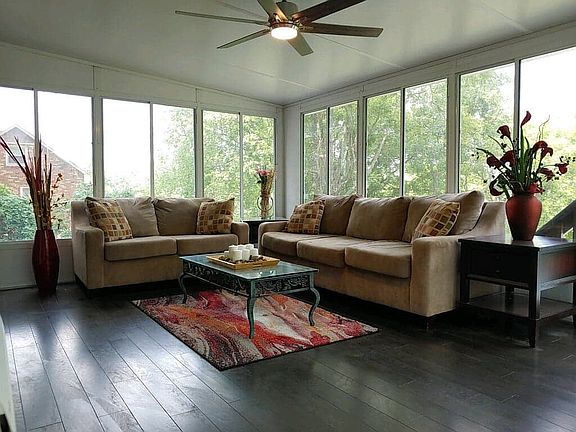 NEW PRO PICS.Gorgeous 4 BDRM, 2 1/2 bath Renovated brick home. Rec/flex room in finished basement. 4 Seasons Rm w/it's own HVAC. 1 master bedroom on main level &1 Owner retreat on entire upper floor with gorgeous bath & living area with separate HVAC. New Windows, beautiful NEW flooring & tile, granite countertops, New cabinets, New matt black appliances,New vanities & lighting, new doors & MORE! Previous 2 car garage is used as storage/workshop, but could be converted back and doors added.