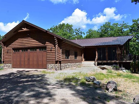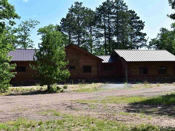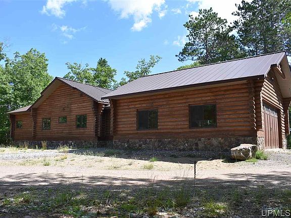 A dream property awaits you here in Northern Marquette County. 40 acres of high rolling terrain that sits atop a ridge line with Lake Superior views sets the scene for a gorgeous, modern log home. Wonderful attention to detail throughout this home provides a move in ready opportunity. The access to the property is via a private easement road about 1/4 mile from the year round County Road KR. Underground power and wifi internet make this location connected but you'd never know that sitting on the deck overlooking the mature oak, pine, and hemlock forest with distant views of Lake Superior. It's hard to cover all the great features in a description and limited pictures, so be sure to view the virtual tour and drone footage. The home's main level features a large attached garage, covered entry way, screened in room attached to the dining room and deck, a bath with laundry, hard tile flooring throughout with in-floor heat, open living-kitchen-dining area with cathedral ceiling gas fireplace, two good sized bedrooms with a full bath between, and a lovely master suite that has a walk-in closet, huge bath with double sinks, tub, and walk-in tile shower. The master has huge windows and direct access to the large deck. In the basement you'll find all kinds of opportunity with a massive open space that has in-floor heat, insulated walls, windows and walkout french doors, and a plumbed/framed area for a bathroom. The exterior has a nice subtle stain, standing seam metal roof, rock pillars and foundation all the way around, and a large deck to enjoy the peaceful setting from. If that doesn't provide enough opportunity, there is a 40x60 pole building with three power overhead doors that has an attached "apartment" which is 786 sq ft with a kitchen, bath, laundry, wood stove, and bedroom. This space is functional separately from the home with its own septic, plumbing, and heating.