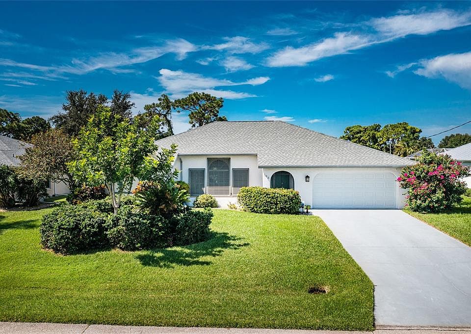 VIEW for a mile from your private lanai! This beautiful home offers a recently-renovated kitchen and master bath with quartz and marble countertops. Inside you will find gorgeous interior design with a coastal and neutral flair. Upgrades and updates throughout the interior and exterior of the home including a 2019 roof; all new plumbing; pool heater; sprinkler well pump; flooring; lighting; and more. This home is move-in ready and can be purchased turnkey with negotiable newer furniture. You are perfectly poised with unsurpassable views of hole #3 of The Palms Golf Course in Rotonda West. This highly sought after premier golfing community will make the perfect place for you to call home with its many social activities and a wide variety outdoor recreation including golfing, tennis, nature trails, parks and 26 miles of canals, ponds and lakes that are abundant with fish and wildlife. Soaring 10 foot ceilings welcome you inside from the screened entryway and provide an abundance of natural light. Offering 4 bedrooms, dining room, breakfast area, family room and large living room - it's PERFECT! You will love cooking in the fully renovated kitchen that has so many well thought out features including; soft close wood cabinets, white quartz countertops, glass tiled backsplash, an apron front farmers’ sink, stunning gray kitchen island, 2020 stainless steel appliances, and pantry closet! The kitchen opens to the family room for great entertaining options with the additional dry bar and a large pass-thru window to the lanai. Just wait til you see the views from the kitchen that overlook the sparkling heated pool and directly onto the golf course! If accommodating family and guests is on your checklist, you will be pleased with the split bedroom floor plan allowing for privacy. Two of the guest bedrooms feature a neutral color tile flooring and share access to the guest bath with a tub/shower combination and access to the pool. While the third guest room has a sliding glass door to the lanai and an ensuite half bath, this would be a perfect home office! The master ensuite has been updated with gleaming white tiled floors, a large soaking tub, a walk-in shower, new double vanity with quartz countertops, a skylight for natural light, and 2 unique walk-in closets. The perfect place to wind down after enjoying your day in paradise. This home is located in a deed restricted community and only 9 miles to the beach! Spend your days enjoying the salt water, golfing, fishing or exploring everything that makes Englewood unique, then watch the sky light up with spectacular sunsets before you enjoy dinner at one of the many local restaurants in the area. What more could you ask for? Call to schedule your showing today!
