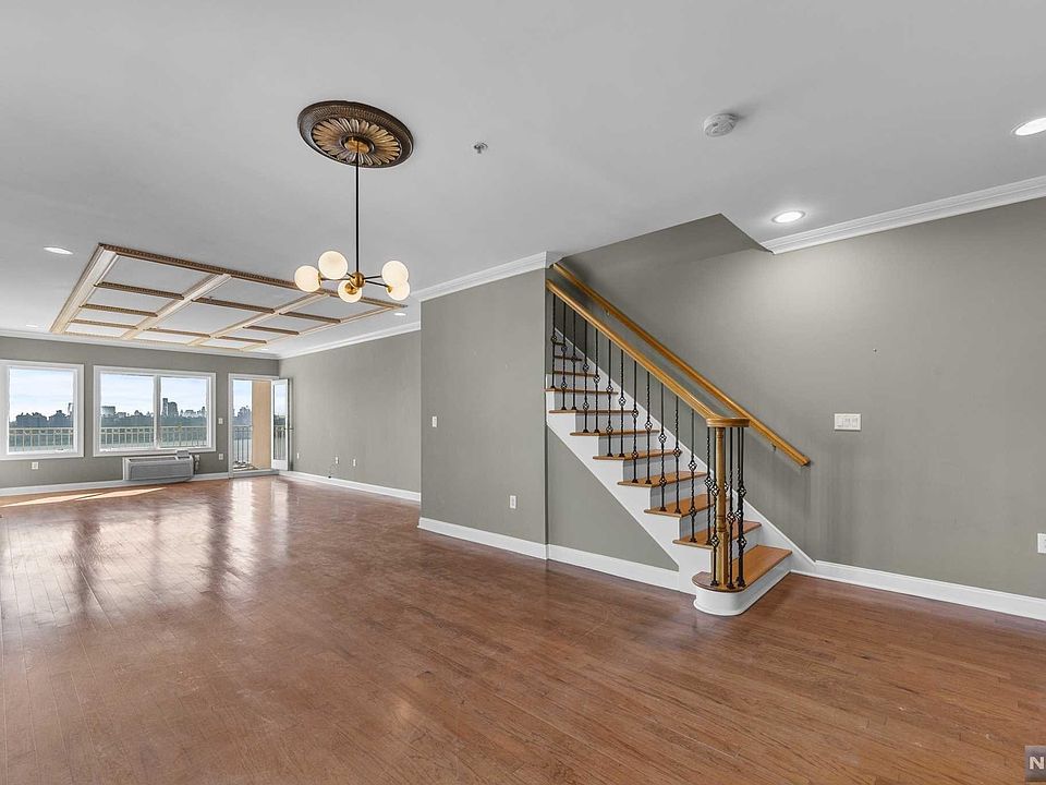 Discover luxury living in this stunning 2-story, 2-bedroom, 2.1-bathroom condo with captivating views of NYC. Unit 3C, perched along the Hudson River on top of the cliffs, offers an ideal location and top-notch quality. Coffered ceilings, crown molding and sunlight highlight the spacious living room with a balcony overlooking the city. The layout includes a kitchen, dining room, and a convenient half bath for easy entertaining. A staircase leads to the expansive master bedroom with its private balcony, providing panoramic views of the city skyline and the Hudson River. The master bedroom features ample closet space and a spa-like master bathroom. The hallway boasts additional storage, a washer and dryer, and linen closets. The second bedroom is generously sized, with its own dedicated spa-like full bathroom and ample closet space. Additionally Unit 3C includes 2 Parking spaces, additional detached storage downstairs and benefits from on-site management for added convenience.
