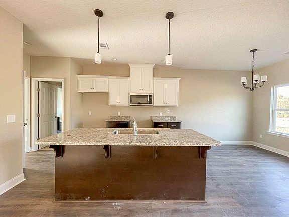 Caitlin plan with 4 bedrooms in Cherokee Station! Ranch-style home conveniently located in Hinesville near local grocery stores, Cherokee Rose golf course & more shopping & dining locations! The home features a central living space upon entry with an open concept! The family room opens up to the eat-in kitchen. The kitchen also features stained cabinets, granite counters & stainless appliances. Plank flooring through the living space! 3 bedrooms & all hall bath can all be accessed from the family room. The master suite is split from the rest of the bedrooms & lies off the kitchen area. The master features a vaulted ceiling, walk-in closet & private bath. The master bath includes a soaking tub & separate shower as well as a dual vanity