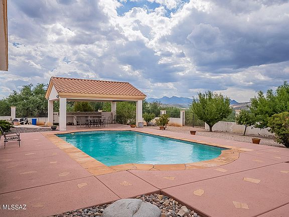 Rio Rico is known for its picture-perfect views, desert landscaping, and custom homes. This property is perched on the perfect lot to highlight all its Rio Rico charm. Stepping in the front door, you are warmly greeted by a large living and dining space. Adjacent is a large great room featuring a living room and kitchen with granite countertops and stainless-steel appliances. The generously sized Arizona room opens from the Great Room and serves as a versatile living space, with large windows framing the mountains' panoramic view. The beautiful tile floors flow seamlessly throughout the whole house, adding to the home's overall aesthetic. The backyard is a peaceful retreat that features a sparkling pool, a large gazebo, and a workshop. Immerse yourself in the private pool area , perfect for cooling off during the warm Arizona summers or basking in the golden sunsets. Discover your own personal oasis in the heart of the desert.