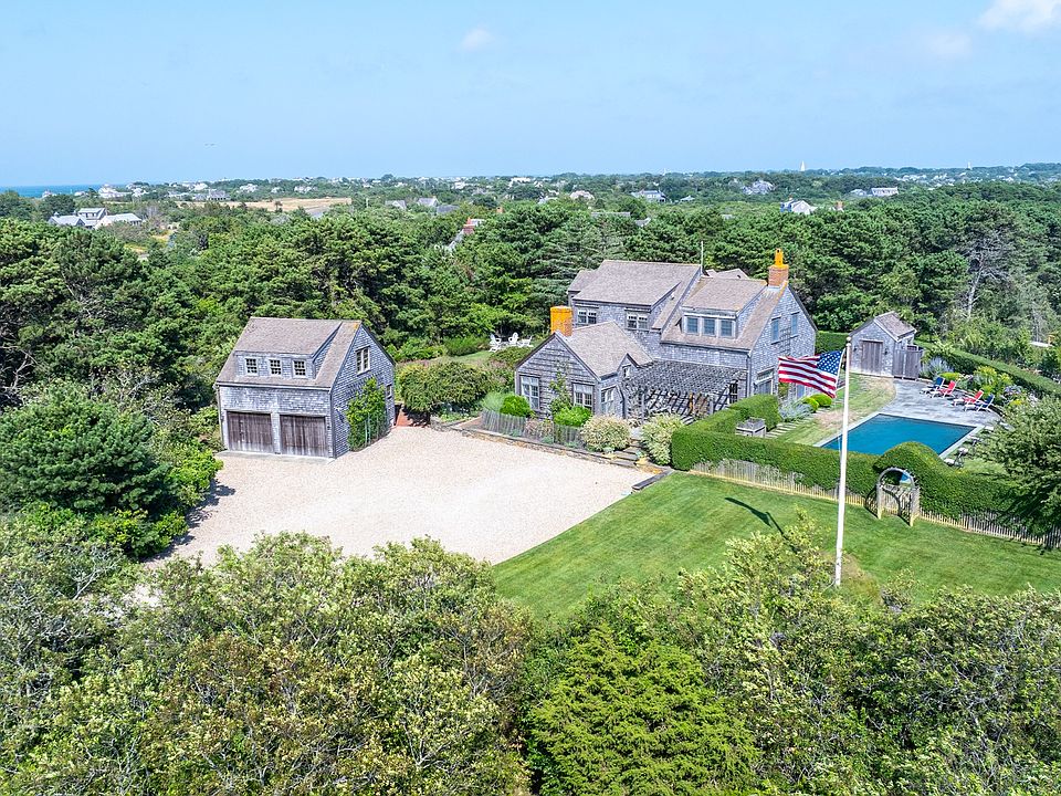 Ideally located on 1.84 acres near the Tupancy Links and Washing Pond, 196 Cliff Road is a timeless estate offering privacy, space, and an easy approach to Town. A sparkling pool, manicured grounds, and a two-car garage complement the beautifully designed 4-bedroom main house and charming 1-bedroom guest cottage. Just across from Washing Pond Road, enjoy easy public access to a secluded and pristine north shore beach. With the bike path across the street, explore the coastal trails of Tupancy Links to the east and the sweeping conservation lands of Sanford Farm to the west—an exceptional blend of island living, recreation, and natural beauty.