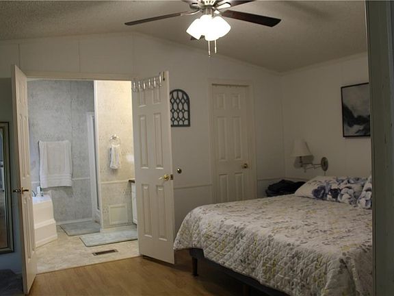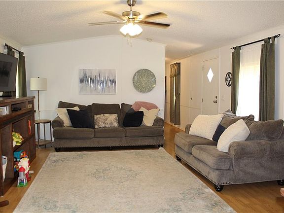 A beautifully kept, charming, and cozy 2003 single-wide mobile home rests on a picturesque 1.47-acre lot in a rural setting yet conveniently minutes away from shopping and entertainment. This home boasts a split floor plan with 3 bedrooms and 2 baths, along with a delightful entertainment area at the rear featuring a covered deck and carport. Additionally, there is a spacious workshop with 3 distinct sections for both indoor and outdoor storage, complemented by a smaller portable building for extra storage space.