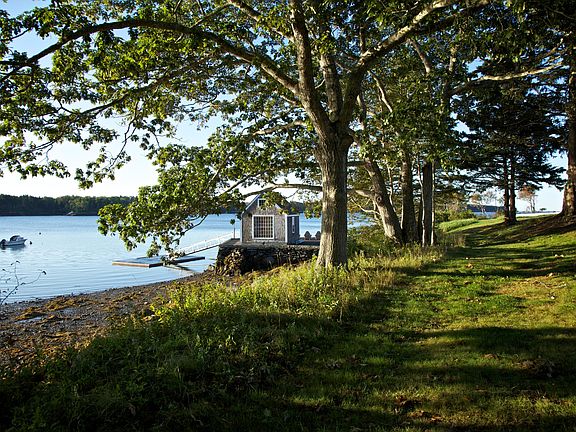 Davis Cove comprises part of a peninsula in one of the most stunning areas on the coast of Maine. The property consists of over 2000' of shore frontage, two islands, a pond, 13 acres of woodland, open fields, and exceptional gardens. The approach is a private winding driveway with an expansive view of the property and cove. The reimagined historic Captain Davis home underwent a sensitive restoration resulting in a warm and inviting Maine residence blended with modern comforts. Created with an artist's eye and constructed with meticulous craftsmanship, the property envelopes you in a complete sense of tranquility. Every room welcomes you with awe - and delights with views of the cove and beyond. The grounds are spectacular and meticulously maintained while preserving the natural beauty. Rose gardens line the lawn and lead from the granite terraces around the house to the water's edge. Those terraces overlook flower gardens, fields, woods, and the bay. A perfect patio for an outdoor kitchen and a stone dining area allows you to enjoy every moment of the day, from your morning coffee to the stunning sunsets and evening stargazing by the stone firepit. There is also a charming guest house with two bedrooms, a kitchen, a bathroom, and a living room with a fireplace. In addition, there is a pier with a brand new dock and an artist's studio, moorings, deep water anchorage, a cove-side boat house, and a large garage workshop with photovoltaic solar panels - a truly breathtaking property.
