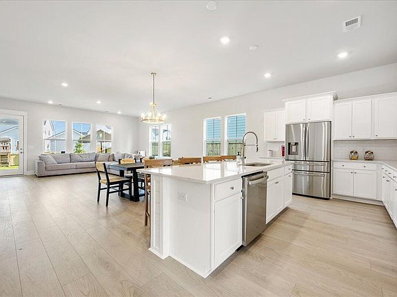 Better than NEW! The most expansive floor plan in the Carnes Crossroads community! This generous two-story residence boasts five bedrooms, making it an excellent choice for all of your needed space. Just off the foyer, you'll discover a bedroom and a full bath, perfect for a secondary owner's suite or a home office. The open-concept design features a gourmet kitchen, dining room, and great room--ideal for entertaining and unwinding. Additional highlights of the home include a tankless water heater, an architectural shingle roof, and plantation shutters. A covered rear porch enhances your living space, perfect for outdoor gatherings or savoring your morning coffee.The first floor features a tranquil owner's suite complete with a spacious walk-in closet, a tiled walk-in shower, and separate dual vanities. Upstairs, you will find a loft/game room, along with three additional bedrooms and two full bathrooms. The backyard is enclosed by a 6ft privacy fence, with HOA green space located behind the home. Carnes Crossroads is rich in amenities, including two playgrounds, expansive green areas, walking trails, sidewalks, two dog parks, a community barn for gatherings, and a fantastic pool that serves as the center of community activities. Residents can look forward to special events, weekly community gatherings, and food truck nights. This community features two schools and is conveniently situated near restaurants and retail shops, all accessible by golf cart. An agrihood and an expansive club with an additional pool are on the way, providing even more membership options. New retail developments such as a Publix and Uptown Goose Creek are also coming soon, adding exciting new places to explore. With a variety of dining options just a short drive away, The Winston in Carnes Crossroads is truly an ideal place to call home. Schedule a showing today!