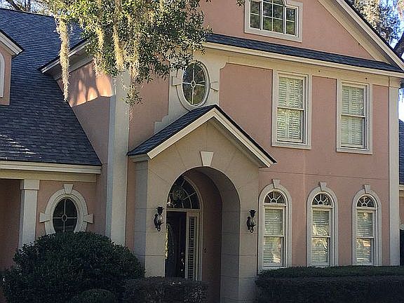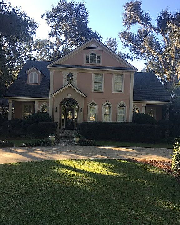 Three. Bedroom, three and one half baths, huge deck, underground sprinkler system, surround sound system, sun room, high ceilings, game room, office, marble foyer, moss draped live oak trees, beautiful nature setting. Roof replaced 2017. Hardwood flooring and carpet replaced 2018.