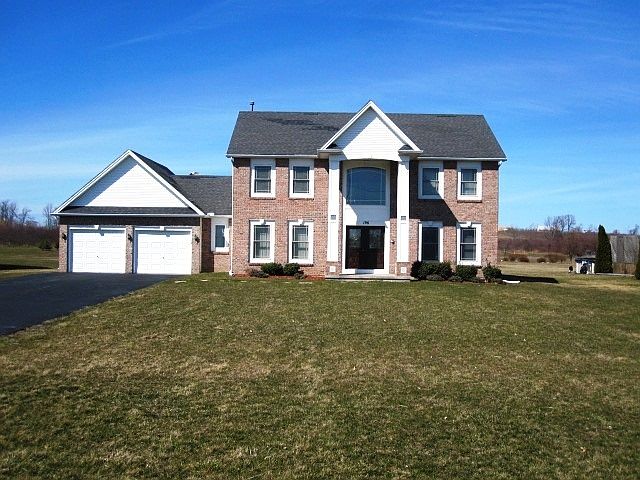 Hilton Steal! Beautiful Custom built home on 3+ acres offering many upgrades! Gorgeous Oak Hardwoods, HUGH Maple Kitchen with Morning Room and sliders to expansive back yard. New Stainless appliances just installed (not reflected in photos yet). New Plush Carpeting, Family Room with Gas Fireplace and French Doors to Living Room/office. Stunning Master Bed and Bath with Jacuzzi tub and walk-in closet. 3 additional bedrooms (1 w/no closet). 12 course basement, 1st floor laundry, public water and sewers. Custom windows and doors throughout. All appliances and window treatments are included. Just Unpack and Enjoy!