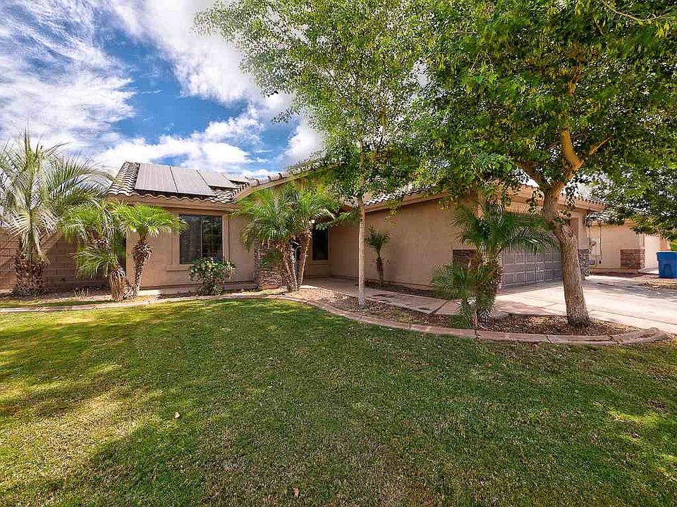 Lovely home at Valle Del Sol in Somerton. Home features include: 3 bedrooms, 2 bath, 2 car garage, covered patio & vaulted ceilings. Tile flooring in living room, kitchen & bathrooms. Granite countertops in kitchen. Master bedroom features a walk-in-closet and double sinks in master bath. Storage shed and solar panels.