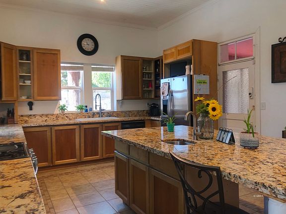 Tucked away on Cedar St. one block up from Downtown Globe is this hidden gem. This 1900 red brick built home with red wood roof rafters was built to last, with updated modern day comforts. The kitchen features a large quartz counter top island with a sink and breakfast bar, walk-in pantry, gas stove and deep kitchen sink. The dining and living area entrance is framed with turn of the century columns, high ceilings, framed windows and door, beautiful ceiling medallions and a large picture window. Each of the 3 bedrooms has its own unique bathroom and walk-in closet, exposed red brick walls and large windows giving the space an ambiance of tranquility. The laundry room has access from the back master bedroom and outside, 2 large counter top spaces for laundry and a sink next to the washer. The back yard offers privacy, shade trees and a 2 story building with the top being a garage with access from Hill St. and the bottom a workshop/ storage. This property backs up to a beautiful historic church. This is a must see home.