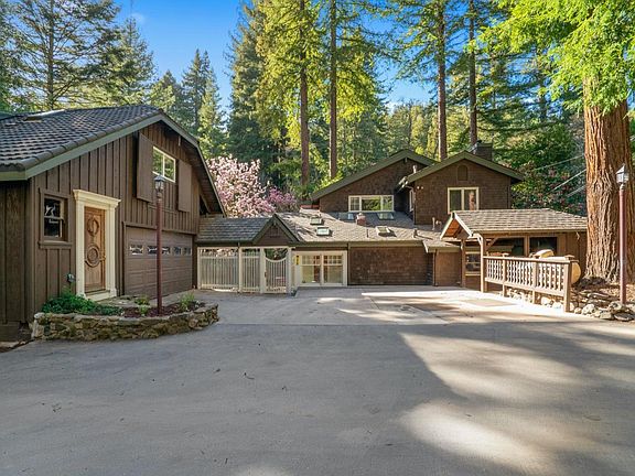 Creekside Retreat! This is a one-of-a-kind property you don't want to miss! Enchanting custom 4-bedroom, 3.5-bathroom home sitting on approx. 2 acres w/ private beach on Zayante Creek. Beautiful kitchen w/ island opening up to dining room w/ wood stove and brick surround. Bright and light breakfast nook off kitchen. Stunning living room opens up to deck with views of creek. Downstairs bedroom/family room is set up with wiring for surround sound and built in TV cabinet. Serene master bedroom suite with walk in closet opens up to private enclosed porch perfect for your morning coffee or tea. Contractor built with custom doors, cabinetry, and amazing details throughout. Detached garage w/ 1 bedroom and full kitchen guest unit above. This tranquil, spacious garden boasts of a pond with waterfall, custom tea house, beautiful lawn, deck + patio areas for entertaining. Raised garden beds, chicken coop, workshop area, and so much more! Close to Felton and great commute location to Los Gatos!