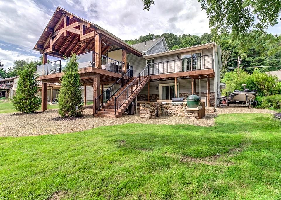Gorgeous waterside home that was completely remodeled in 2011. Open kitchen and living room with cathedral ceilings, granite counters, walks out onto a huge covered deck! Master bedroom with a large walk in closet and walks out onto the deck to enjoy the lake views. Lower level family room with a ventless gas fireplace, large 3rd bedroom and bath on lower level along with a possible 4th bedroom. Immaculate 2 car garage, beautiful landscaping, outdoor kitchen, the perfect home for entertaining! Amazing sunsets, this is a must see!!