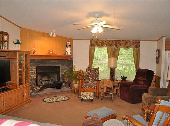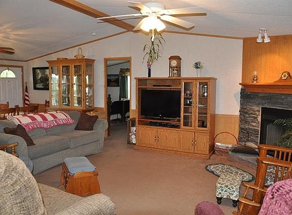 WELL-MAINTAINED 3 BEDROOM/2 FULL BATH DOUBLE-WIDE HOME IN FAWN VALLEY! Home has split floor plan with master suite at one end and 2 bedrooms & main bath at the other end. Open floor plan between kitchen, living room & dining area. Vaulted ceilings and even a wood-burning fireplace! Master bath has double vanities, stall shower & corner garden tub. Storage shed/workshop. Paved driveway. Wheelchair ramp. Lot is on outer edge of road with private back yard! Lot rent is $322 per month and includes water, sewer and road maintenance.