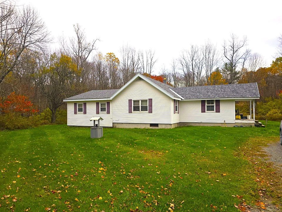This quiet country location has 2 homes located on its 2 acres. The main home is a 3 bedroom ranch featuring a large eat-in kitchen opening into a large living room. 3 bedrooms, including an addition with a large primary with 2 closets inlcuding one whick is a large walk-in closet. A large full bath with washer/dryer hookups completes the living area. The house has a partial concrete basement under the older portion, with a crawlspace under the addition. This main house needs some TLC including interior paint and could use new carpet and vinyl flooring. The smaller second house is located a few hundred feet from the main house and has its own separate driveway and a separte septic system (the 2 houses do share a common drilled well) This house features a 2 room design with the kitchen / living room space, large bedroom, full bath, and a utility/laundry room. At 798 sqft, there is plenty of room. The possibilities are endless.. occupy the main house and have a family member or tenant live in the smaller house or possible Airbnb. Or rent both homes. Or use the 2nd home as your office.
