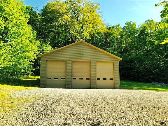 WOW! You don't come across places like this often! Come down the country road and turn into the driveway and as you go over the bridge to cross the creek you will notice the picnic pavilion, foot bridge over the creek and the pond all situated below the home surrounded by mature trees and mountain laurel. Up the driveway you will come to a mechanics dream 40x40 garage. This 3 bay garage with 10 ft doors has a heated floor, water in the garage and an upstairs level and room over the one bay. Enjoy the large wrap around deck on this 3 bedroom, 2 bath home. This mountain home features a open floor plan with oak cathedral ceilings! Check out the large custom built kitchen with wormy oak cabinets! The propane fireplace is great for the chilly winter days! 2 bedrooms and a full bath on the main level and upstairs is the master with a full bath and a loft area that is great for a sitting area or a office! Trim work & wood in the home is oak and the room doors and closet doors are oak too!