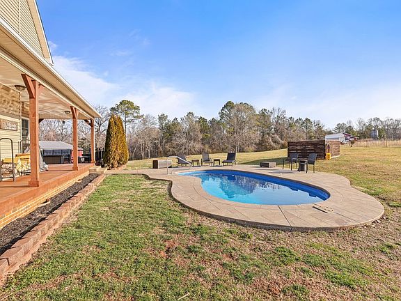 The master suite on the second level has a nice walk in closet, dual vanities, soaker tub, and a separate shower. Moving outside you can enjoy the large covered wrap around porch, with a 300 sqft. deck that flows right into the in-ground pool. The pool is fiberglass and has beautiful stamped concrete surrounds. For my people out there who love their tractors, boats, and RV's, the Metal barn is a dream come true. Extra high ceilings and doorway, allow you to pull those items in and keep them shielded from the elements when not in use. The power and water hookups in the barn are crucial to maintaining a homestead like this one. Past the barn you make your way to the back pasture which slopes down to 12 Mile Creek. Here you can enjoy the serenity of the water, fish, or even jump in on your kayak! This place feels like a slice of heaven and I know you will enjoy every second you spend here! Check out the video on youtube, facebook, or click the virtual tour link!