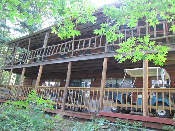 Great house on the 4th green, of the Golf Course. Just pressure washed and freshly stained outside of house! Beautifully remodeled in 2002 and hand crafted features, in the railings and beams in the living room area and back deck. Super Man-Cave/Game room, in the fully finished basement, with separate entrance going outside. Beautiful large stone flooring throughout the basement, and bathroom, and laundry area. The master bedroom and suite are on the main floor. Sliding glass doors to outside deck, of the master, looking onto the golf course and lovely woods. Completely covered porch with cool railings, keeps the summer days cool. Property on 2 lots, #20 and #21. Room to build carport and/or workshop on the extra lot! Move in ready!